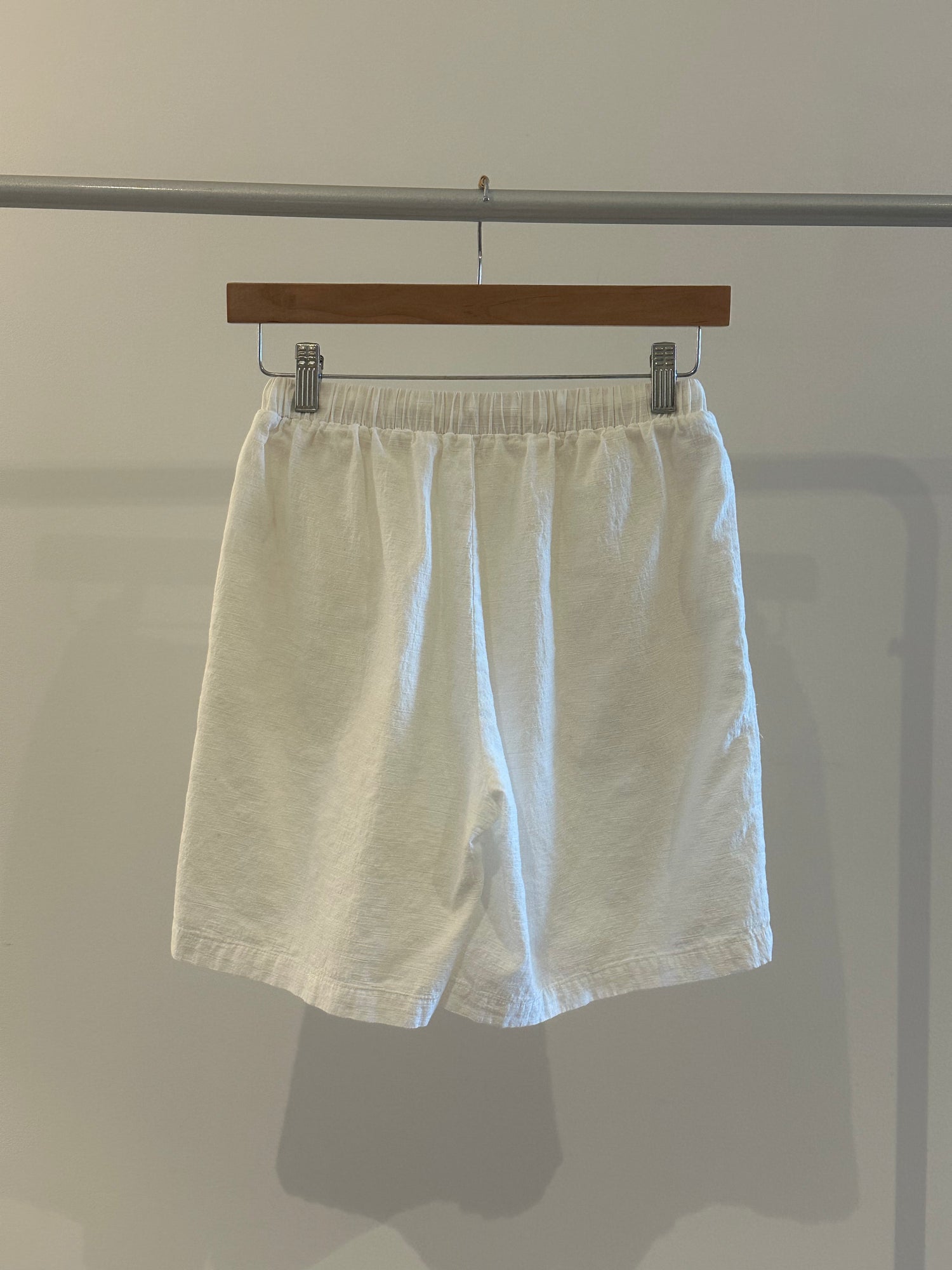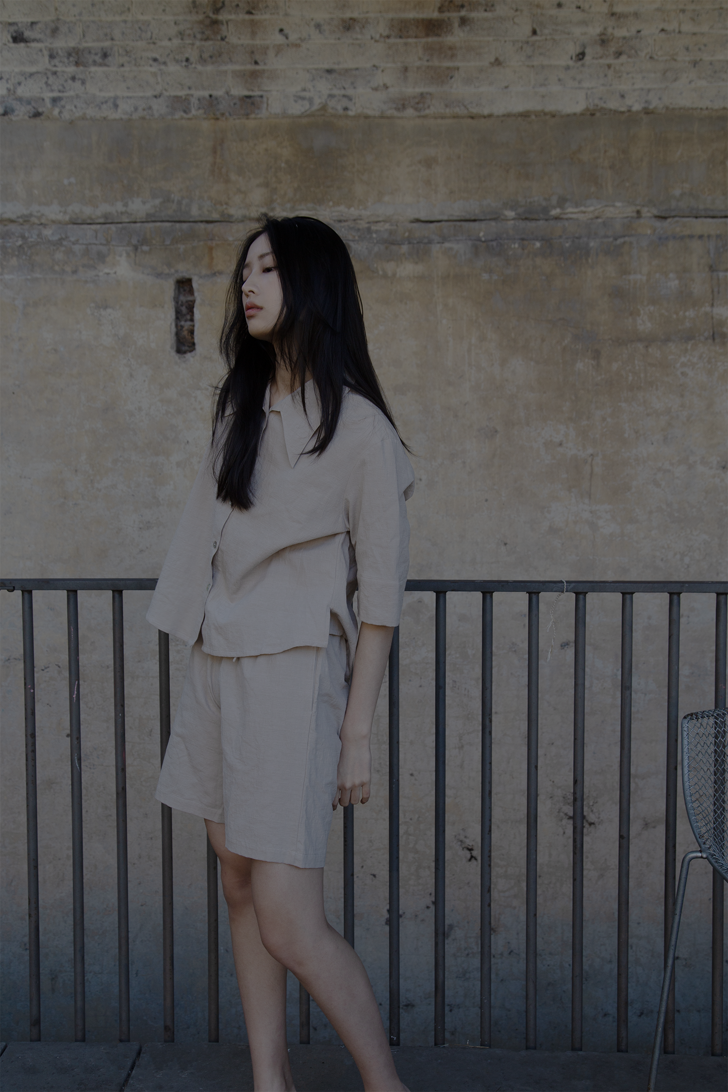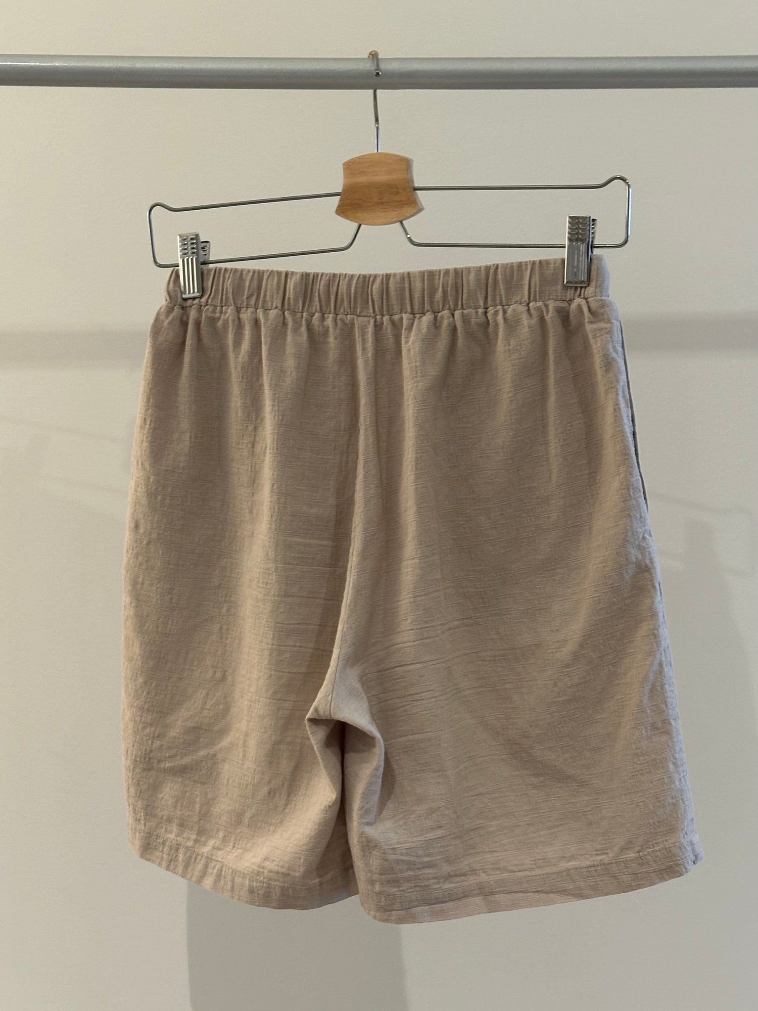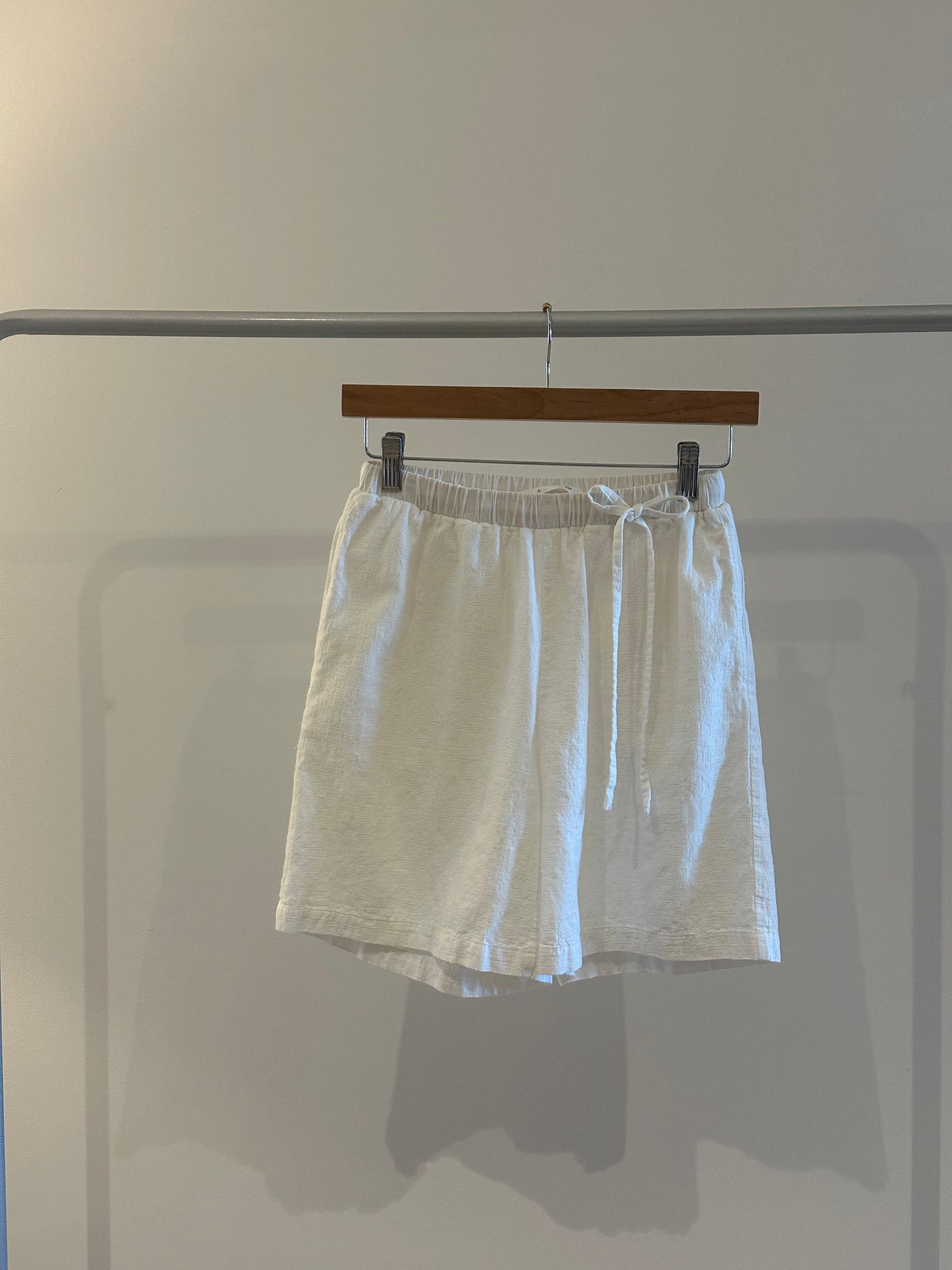Breezy and understated, the set is crafted from lightweight, textured linen for all-day comfort. The boxy button-up top features a wide collar and relaxed sleeves, while the matching high-waisted shorts offer a soft, effortless fit. Ideal for slow mornings and sun-soaked days.