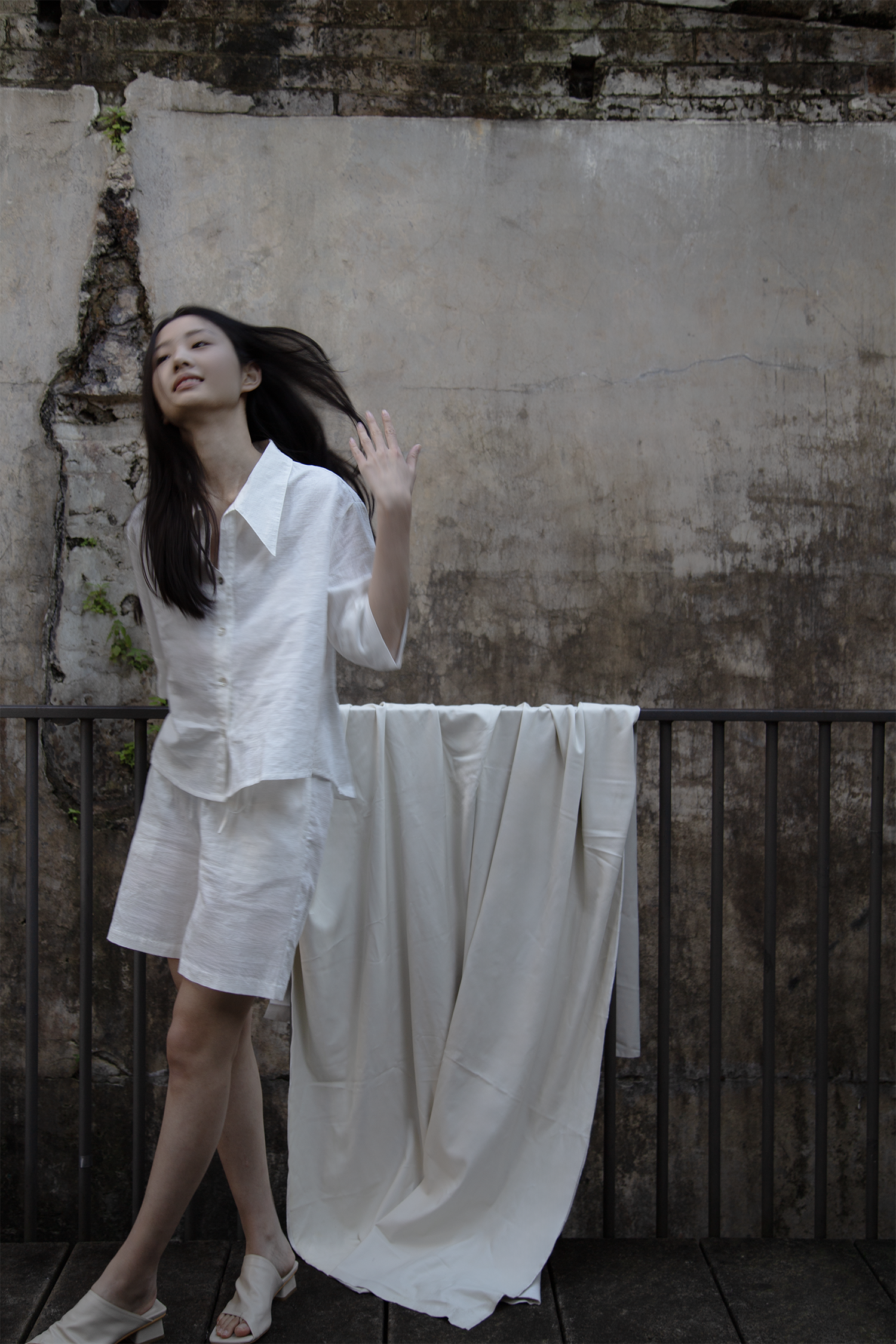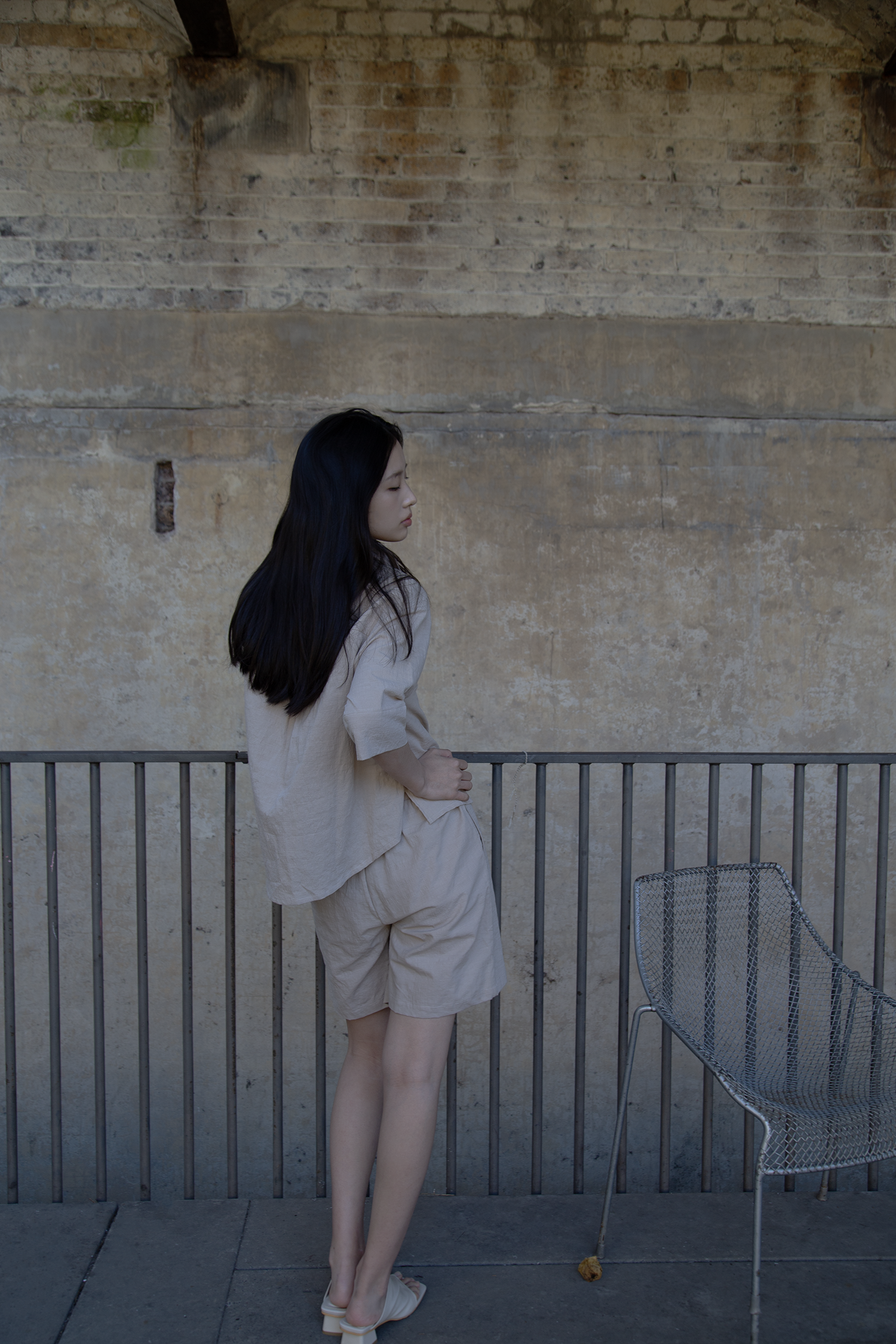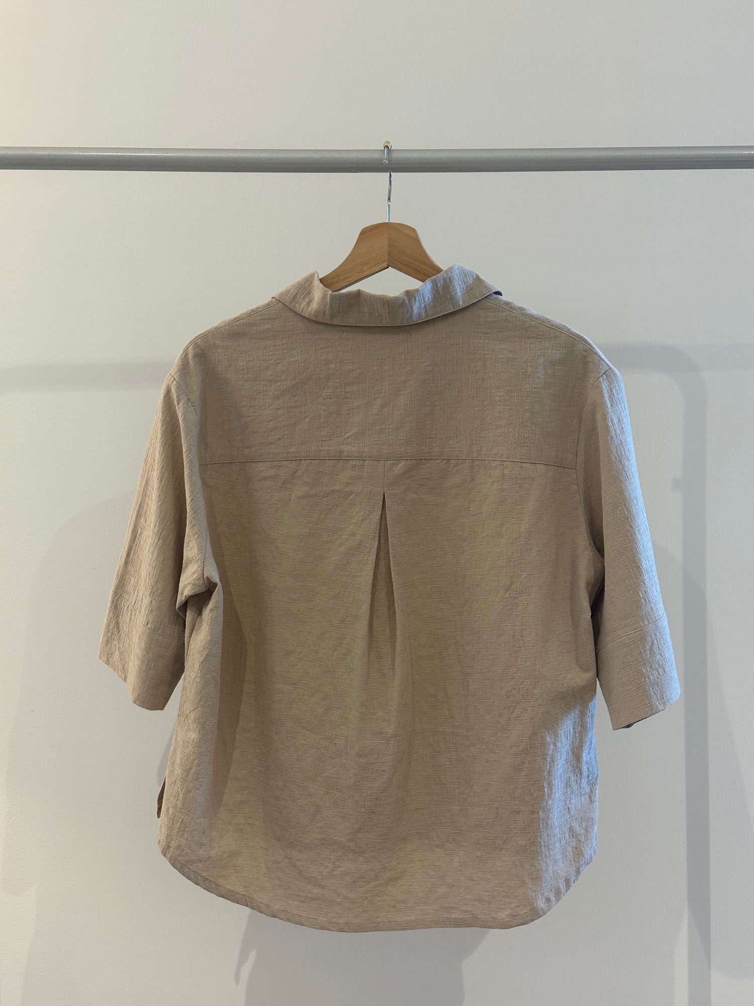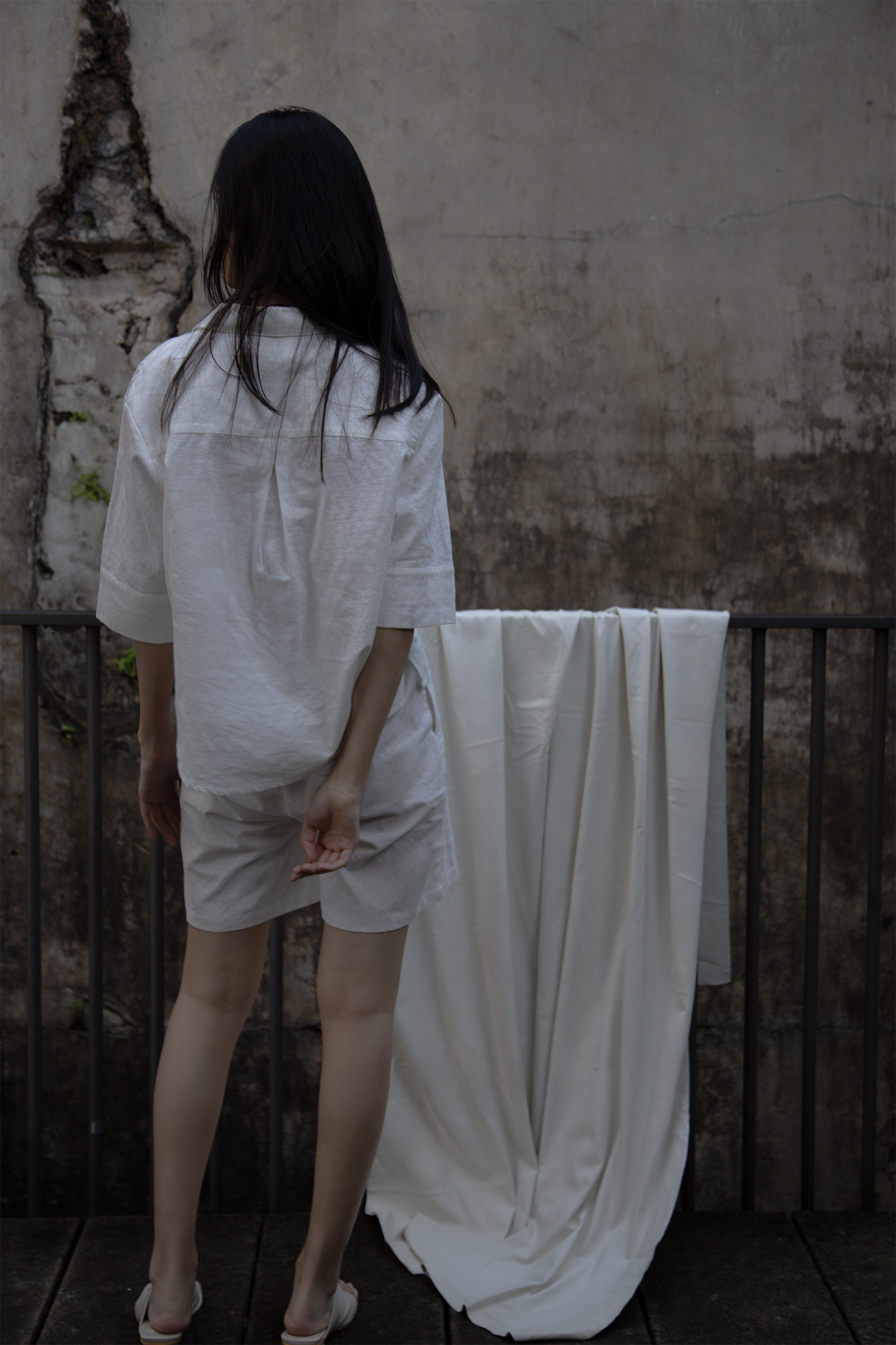 Breezy and understated, the set is crafted from lightweight, textured linen for all-day comfort. The boxy button-up top features a wide collar and relaxed sleeves, while the matching high-waisted shorts offer a soft, effortless fit. Ideal for slow mornings and sun-soaked days.